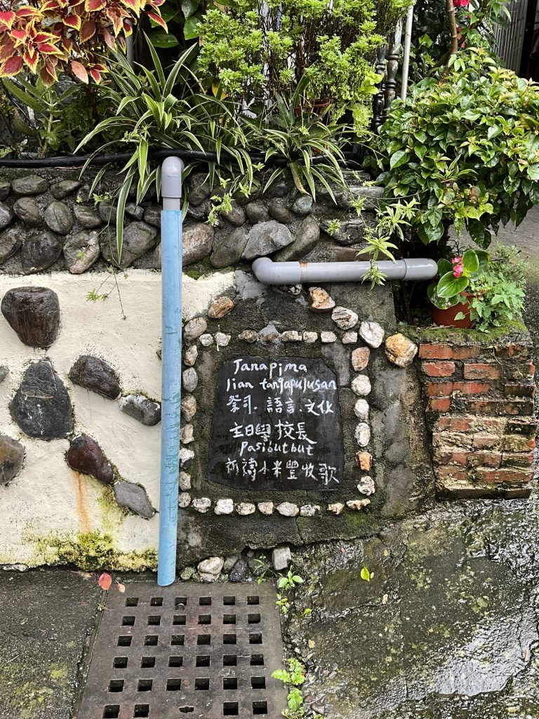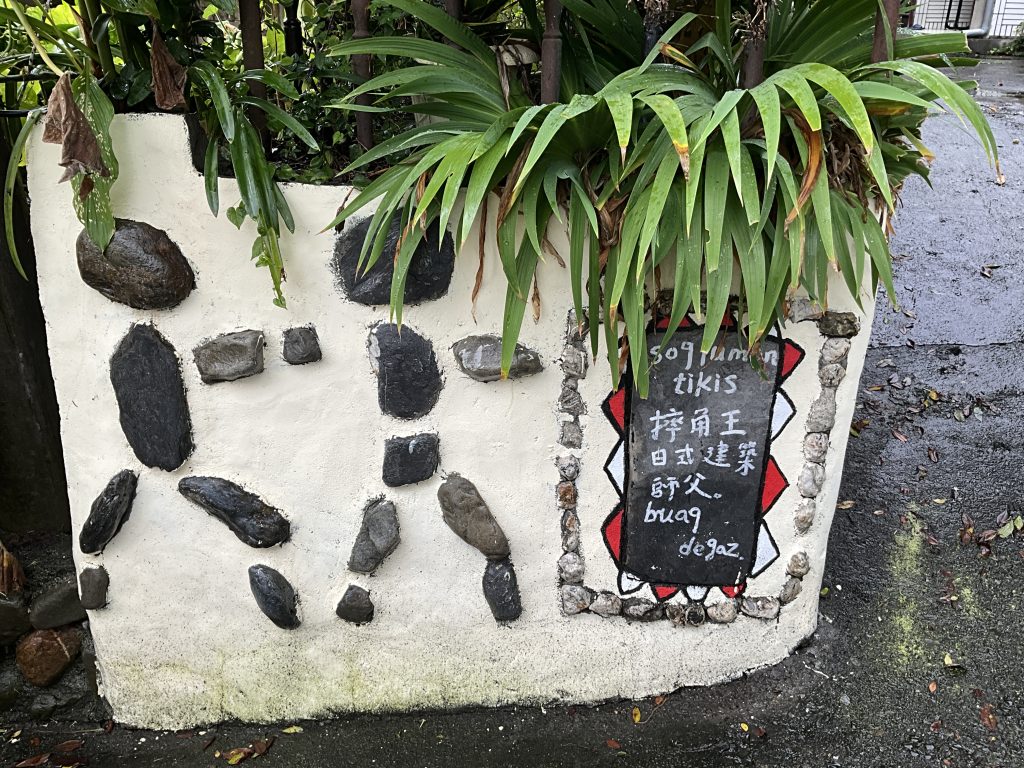 卡里布安的巷弄裡其實有很多可愛的石頭組成的壁畫,他們的姿態多半是類似火柴人的樣子,樸拙的外型生動組合出部落的故事,拔河隊、聖誕節煙火、搗小米,甚至是族人們用傳接石頭的方式共同創作出這些壁畫的過程也都記錄在內。各家的門口還有一塊石板,寫著關於這個家族的故事。